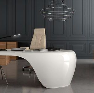 Zero designer office desk collection by Della Rovere, designed by Karim Rashid: design and elegance are features of that project standing out for formand innovation. The use of innovative materials which are unusual for office furniture though extremely engaging, allow a possible placement of the product even in different circles truly different from the ones it had been originally made for.