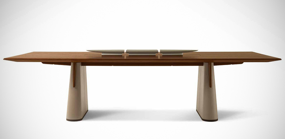 Whether they are round or rectangular, the Fang tables by Giorgetti furnish with functionality and elegance, offering materials with a strong personality and interesting contrasts of volume and thickness. Born from the idea of meeting and gathering together, these pieces express the concept that the table has always been a fundamental element of furniture and the centre of the home: an object of service and place of conviviality, with time it has been renewed, with increasing attention to style and materials.Series of rectangular tables of 240 and 300 cm.